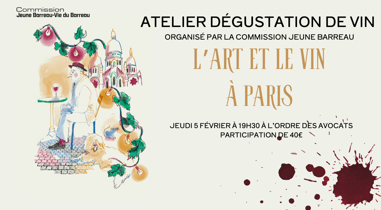 La Commission Jeune Barreau, Vie du Barreau, organise une originale dégustation œnologique le jeudi 5 février 2026 à 19h30 en salle du Conseil de l'Ordre.