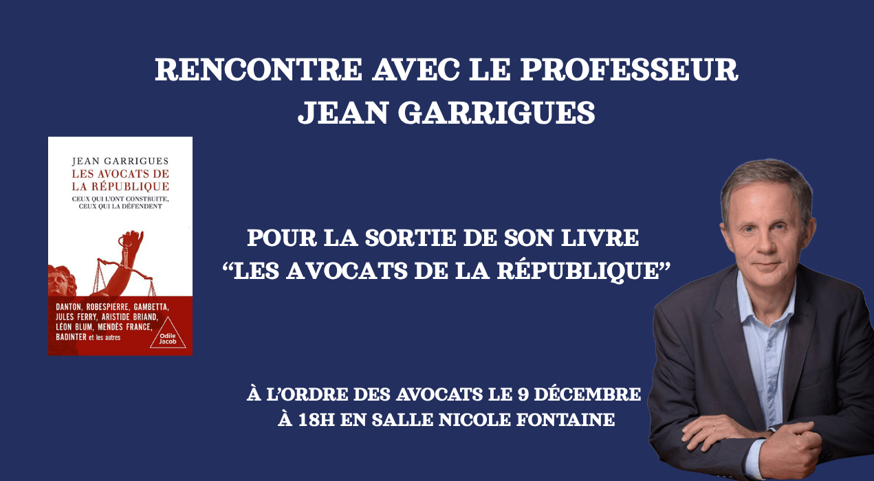 A l'initiative de Marie-Paule Descamps et en partenariat avec Maître Mot - le club littéraire, le Barreau des Hauts-de-Seine recevra Jean Garrigues pour la sortie de son ouvrage "Les avocats de la République, ceux qui l'ont construite, ceux qui la défendent".